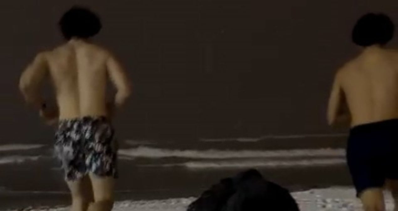 Samsun’da hava sıcaklığının gece saatlerinde eksi 2 dereceye düşmesine rağmen gençler soğuğa meydan okuyarak denize girip cep telefonu kamerasıyla görüntülendi.